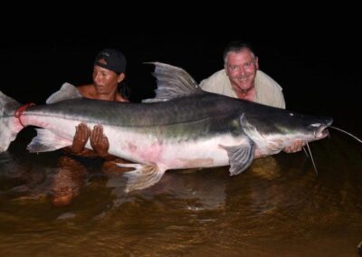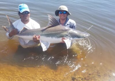Taming a Piraiba is a battle for seasoned anglers. Their immense size demands heavy-duty equipment: a strong rod, a large-capacity reel, and a line that can withstand the punishment – a big Piraiba can strip off 150 meters of 100-pound line in a heartbeat. Once hooked, expect a fierce fight. These powerful fish will make blistering runs repeatedly until utterly exhausted, sometimes needing following with the boat at full speed! Only then can you hope to bring them to the boat or secure them on the shore for pics and unhooking.